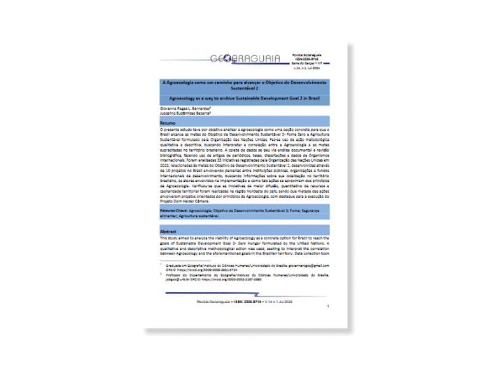 BERNARDES, G. R. L. ; BEZERRA, Juscelino Eudâmidas . A Agroecologia como um caminho para alcançar o Objetivo do Desenvolvimento Sustentável 2. Revista Geoaraguaia , v. 14, p. 1, 2024.