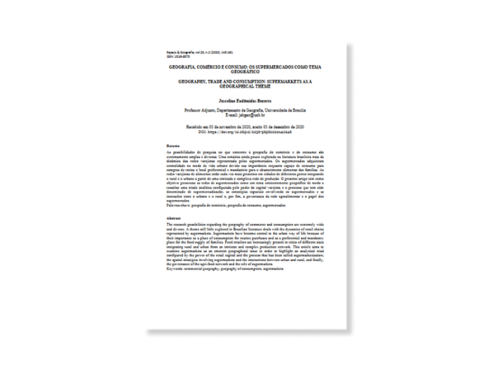 BEZERRA, Juscelino Eudâmidas. Geografia, comércio e consumo: os supermercados como tema geográfico. Revista Espaço e Geografia (UnB), v. 23, p. 143-161, 2020.